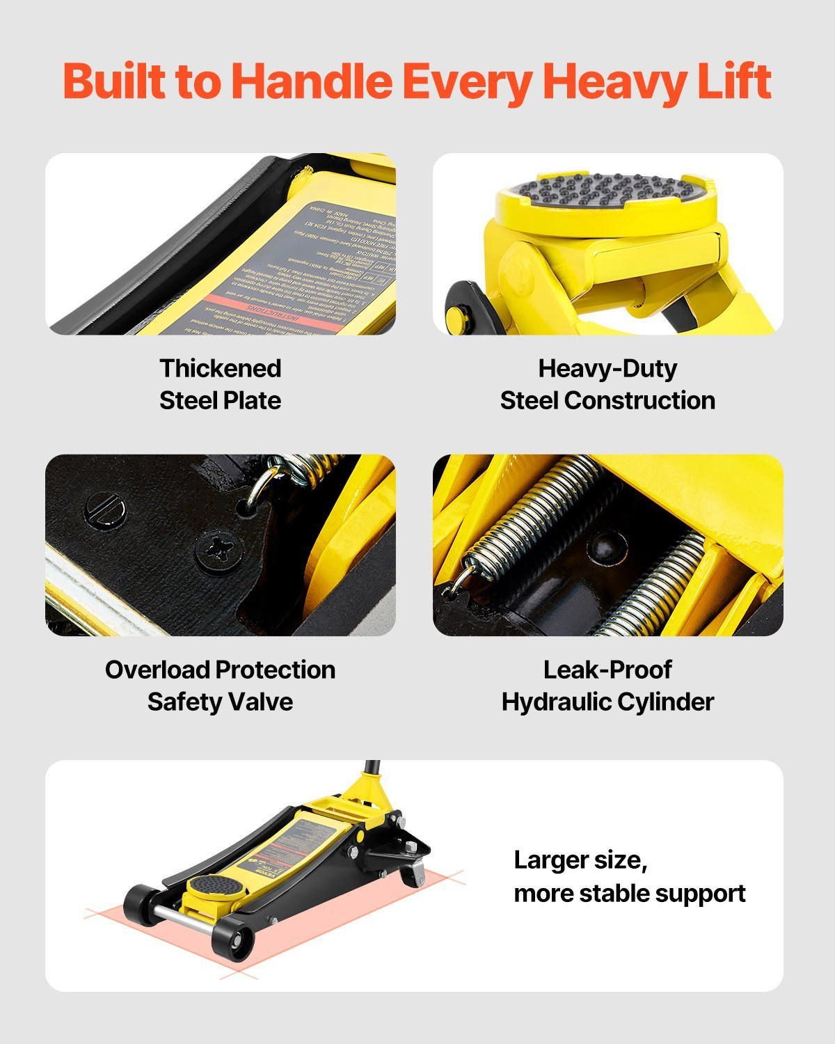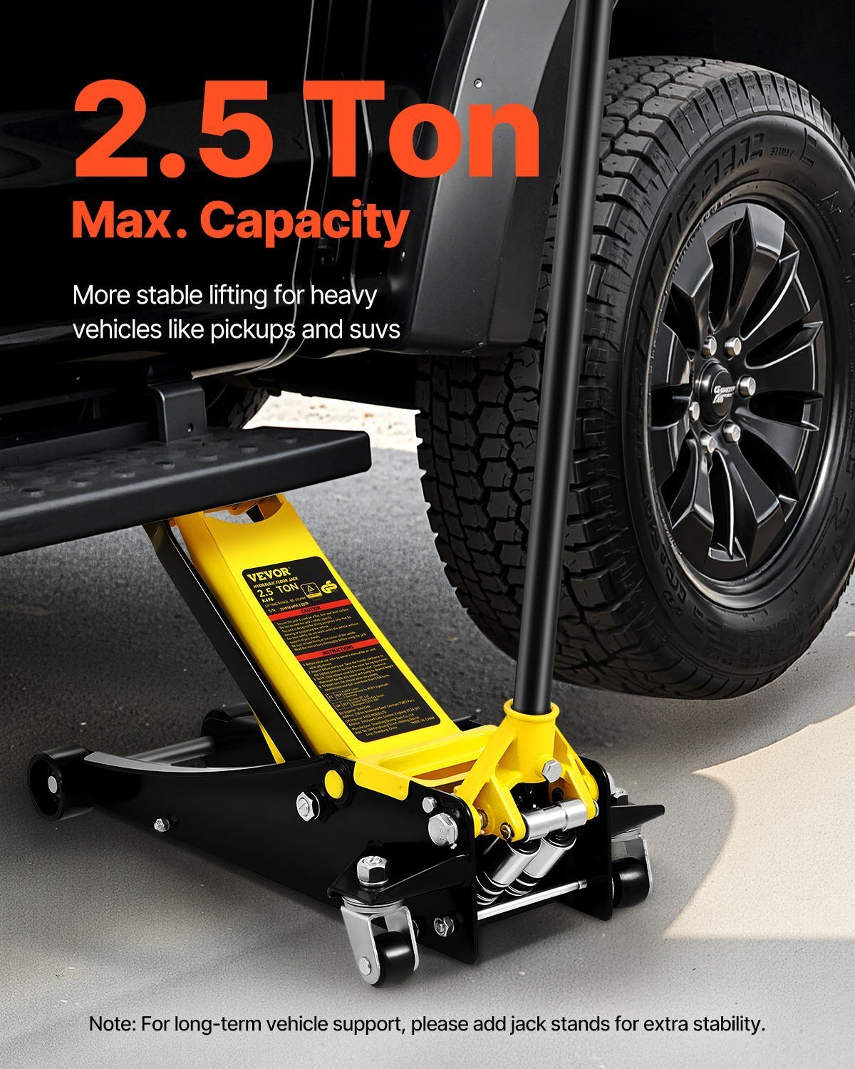 Jack it Up: With 2.5 tons/5500 lbs strong loading capacity, VEVOR’s floor jack can help you raise your car for whatever reason. Replace a tire, change oil or maintain the brake, whether you are a professional, car enthusiast, or weekend DIYer to take matters into your own hands!
