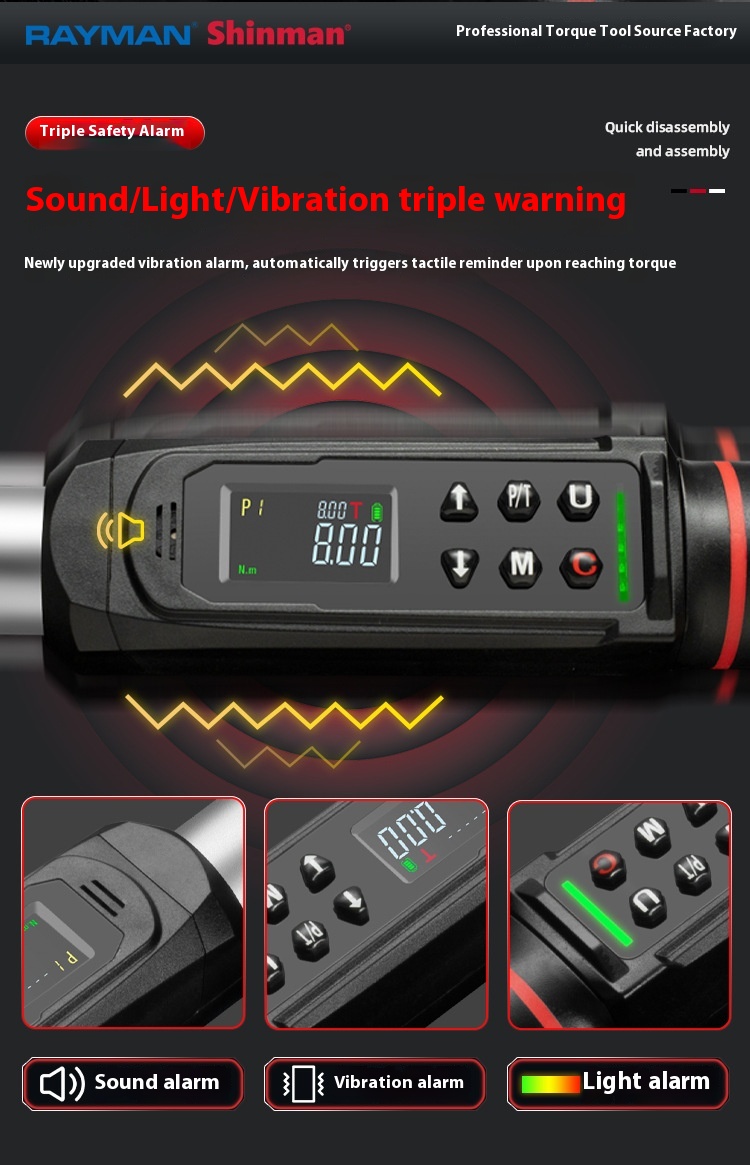 Warning method: Sound. Light. Triple vibration warning