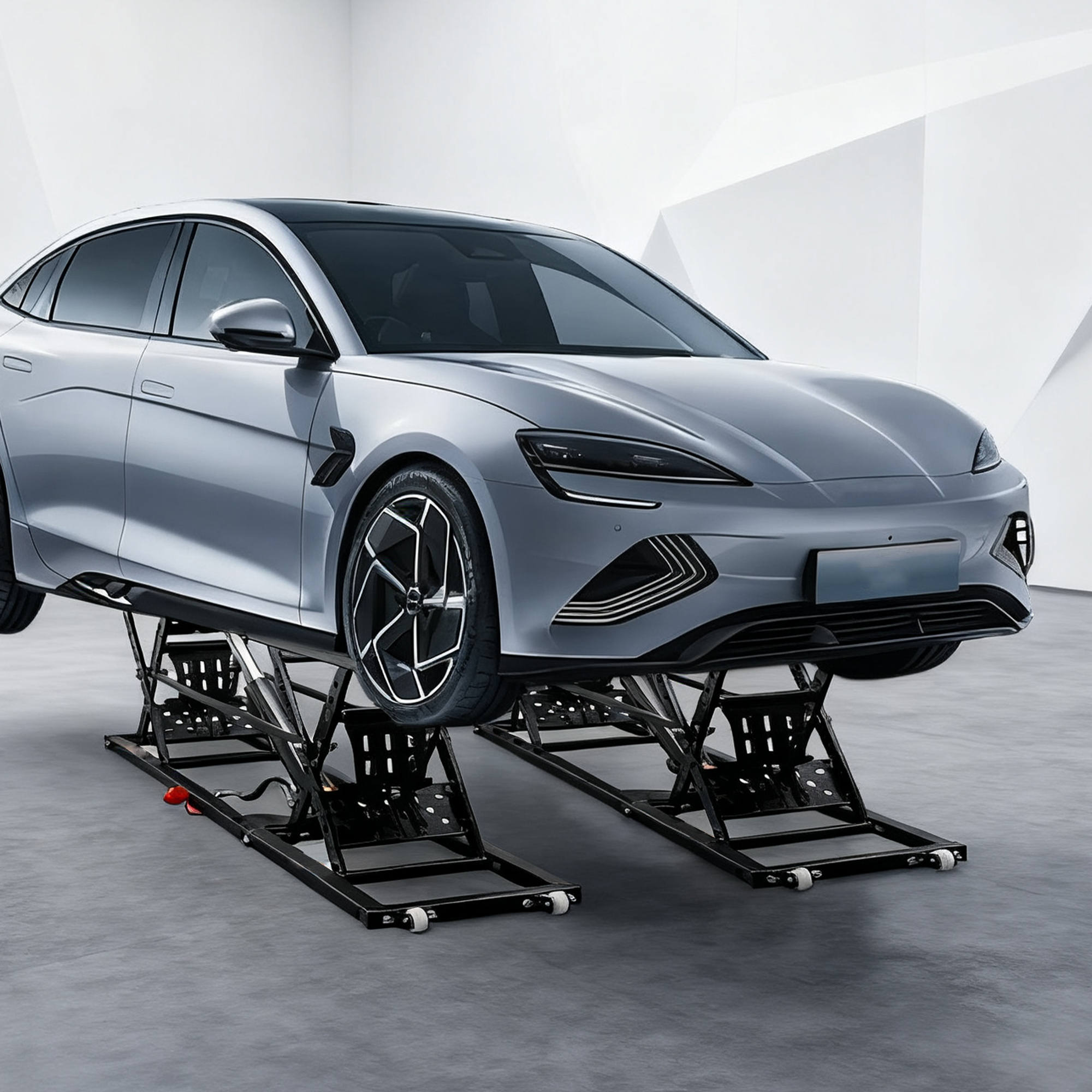 - [Adjustable Height for Flexible Access] Features four adjustable lifting columns, allowing easy height adjustment up to 3.2 inches. The full lifting range extends from 10.24 inches to 26.8 inches, while the four lift pads offer a range of 6.5 to 20 inches—providing ample workspace underneath the vehicle for maintenance and inspections.